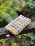 細長い布をまっすくつなぎ合わせ、いろんな色の刺繍でかわいく仕上がっています。
