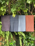 Dは柔らかめのコットン生地で、えんじ色ベースにオレンジベージュっぽい麻柄プリント。