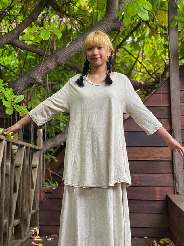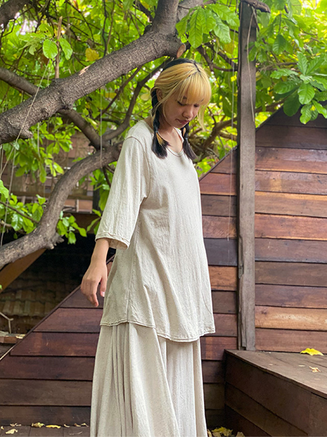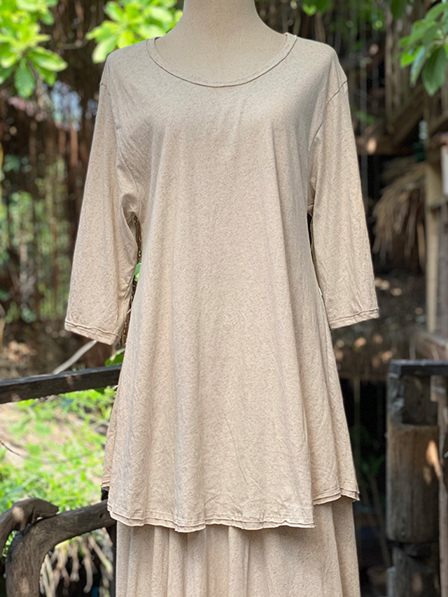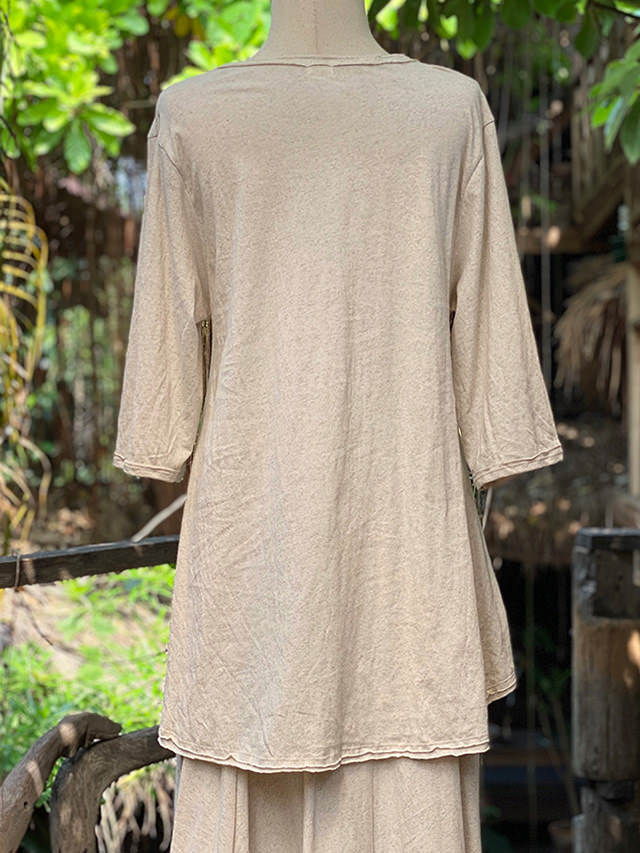 asana ヘンプコットン 薄手 ゆったり 7分袖 チュニック・草木染め
