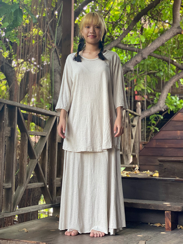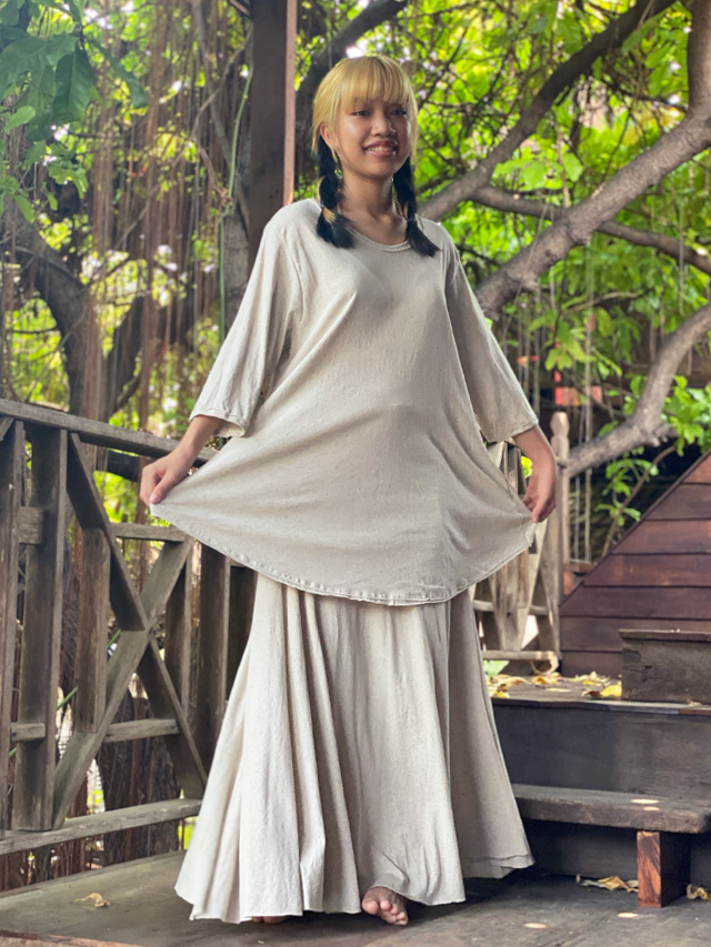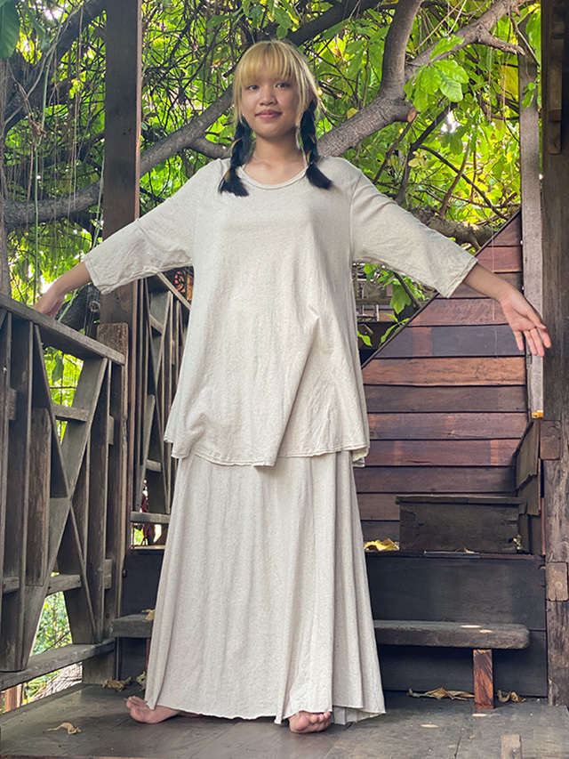 asana ヘンプコットン 薄手 ゆったり 7分袖 チュニック・きなり