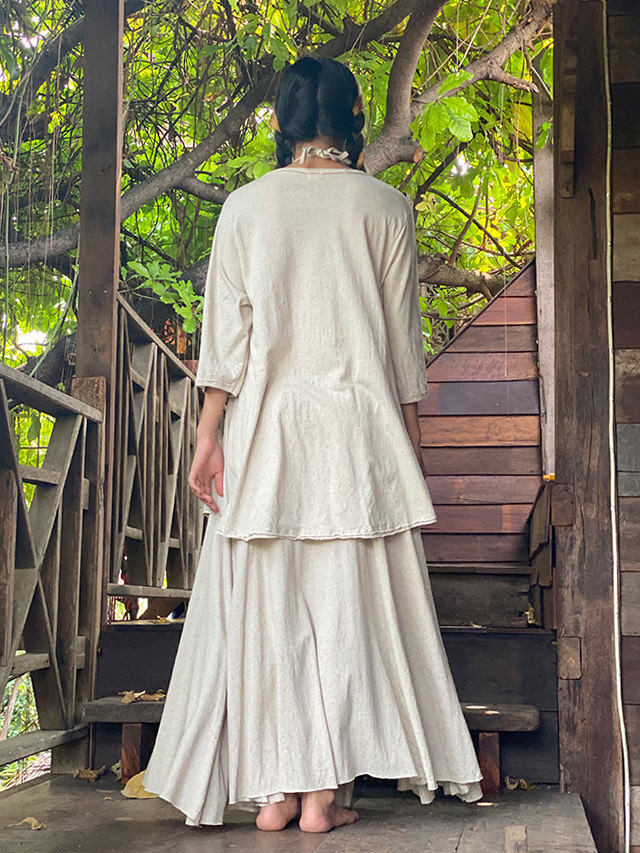 asana ヘンプコットン 薄手 ロング フレアー スカート・きなり