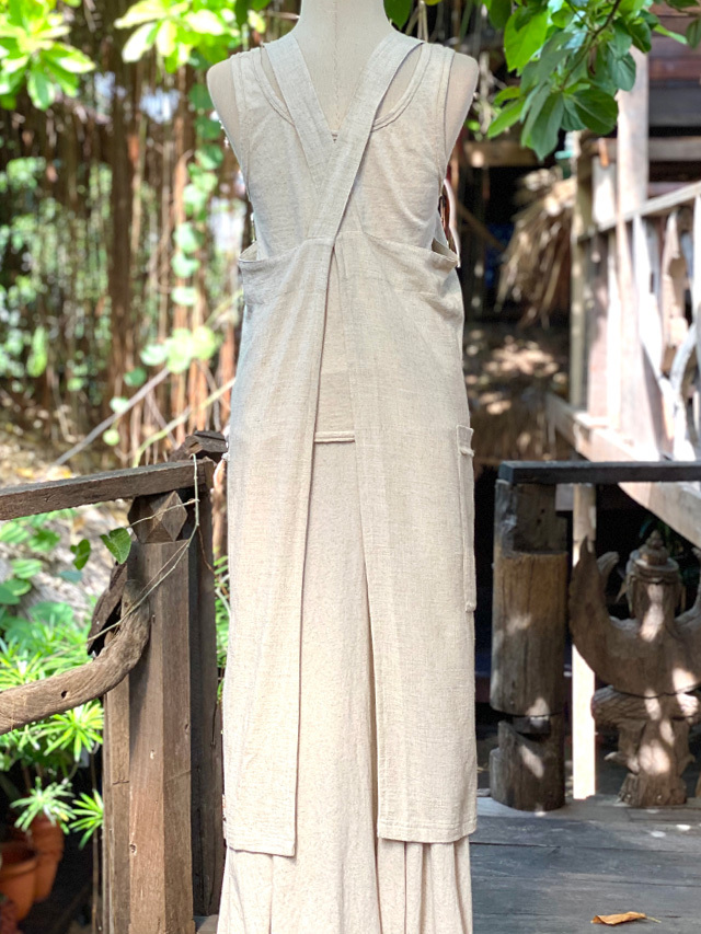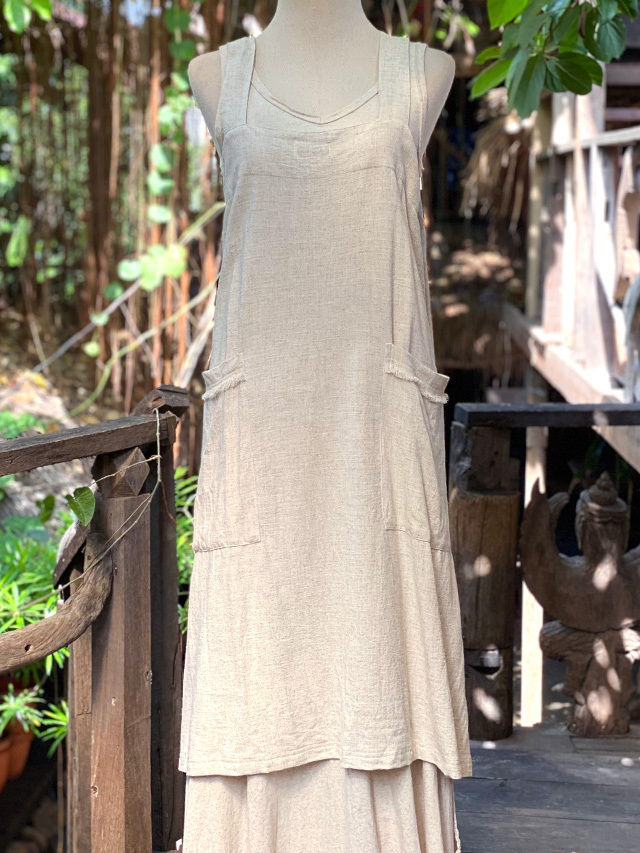 ヘンプ100%のやわらか生地のロングワンピースの草木染め
