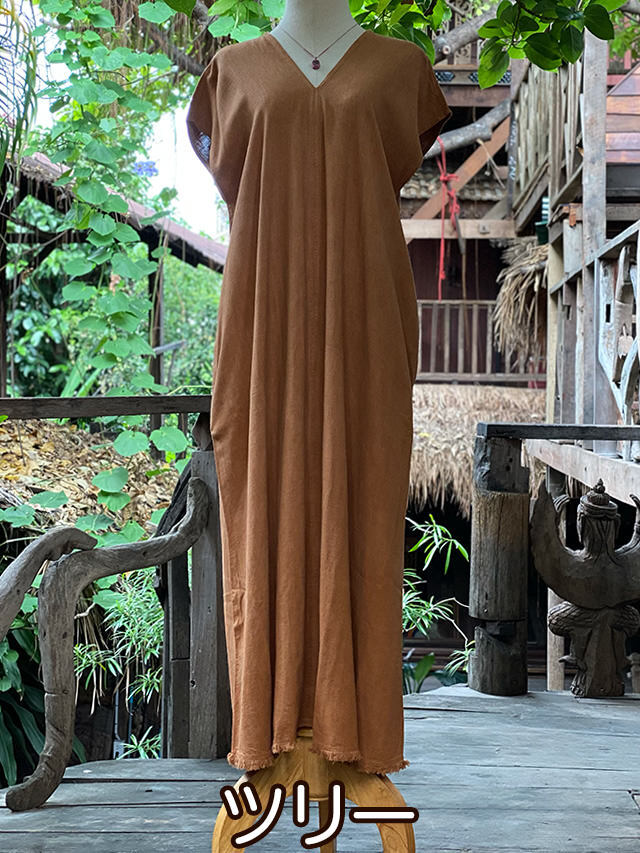 製品名: asana HEMP100% テロテロ 貫頭衣 ロング ワンピース・草木染め