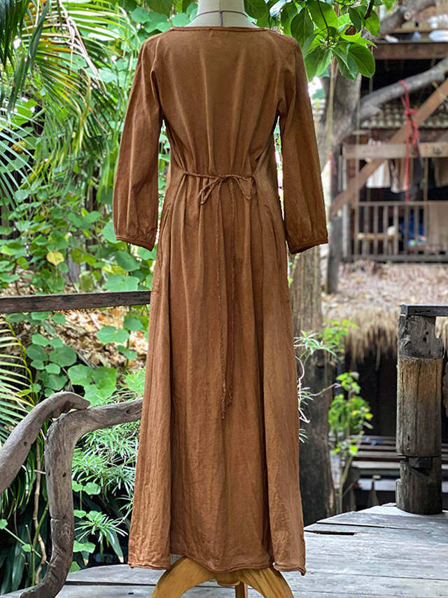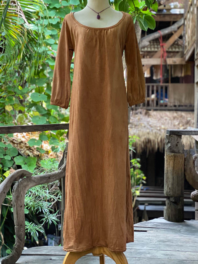 製品名: asana ヘンプコットン 厚手 ポケット ロング ワンピース・草木染め
