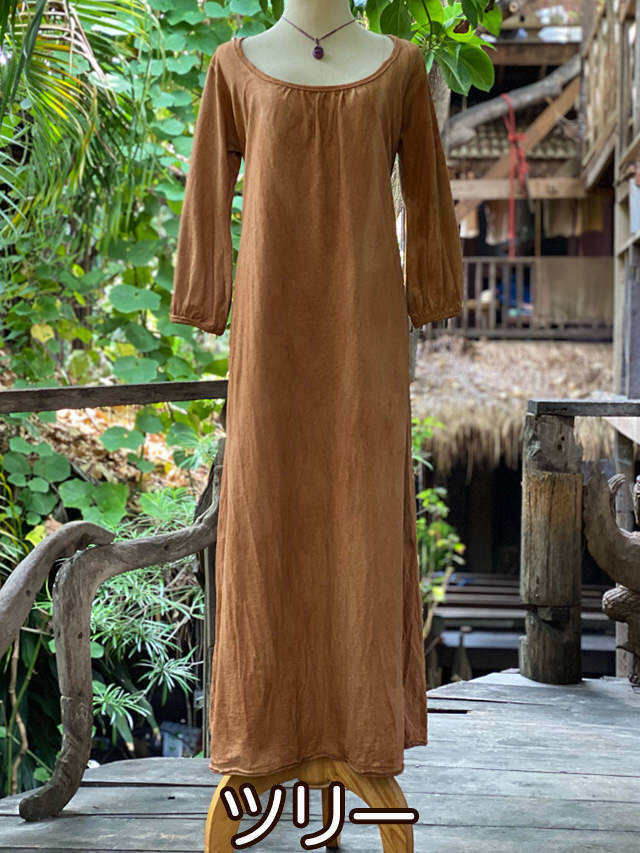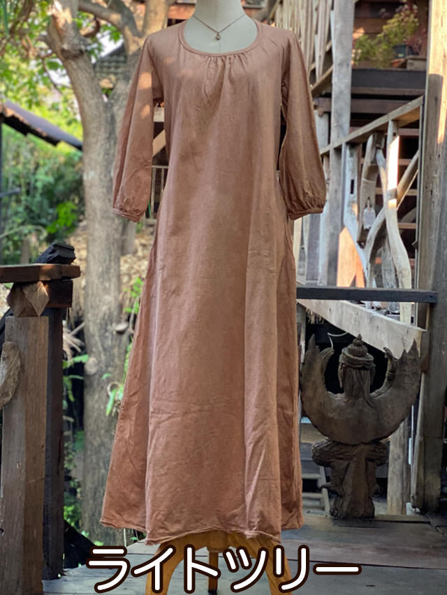 asana ヘンプコットン 厚手 ポケット ロング ワンピース・草木染め (14色)