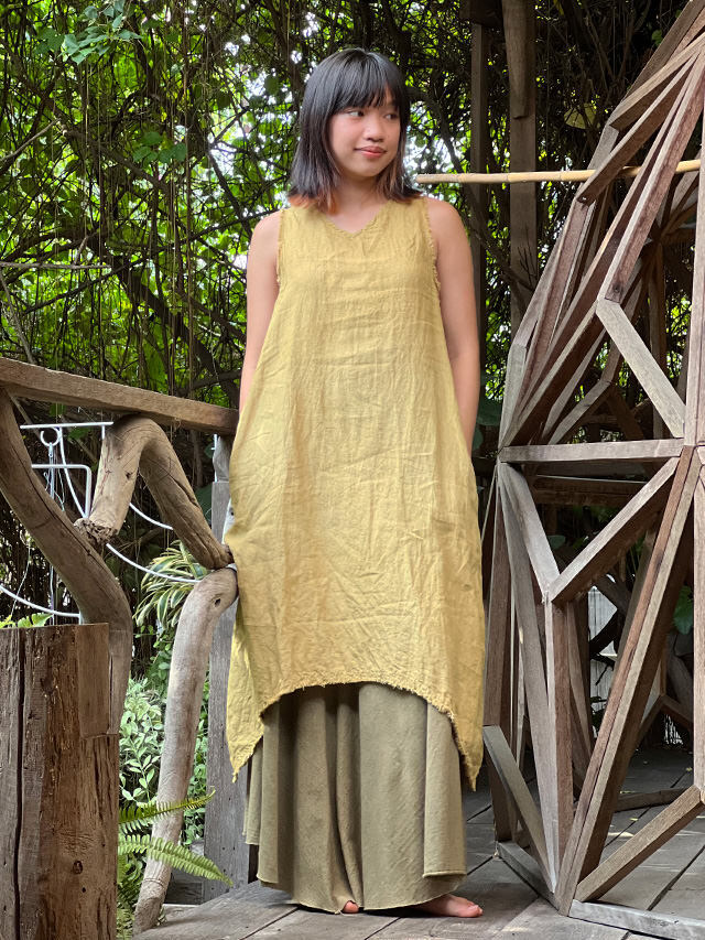 asana HEMP100% テロテロ ノースリーブ フリンジ チュニック・草木染め (13色)