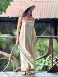 asana ヘンプコットン ロング キャミ ワンピース・きなり