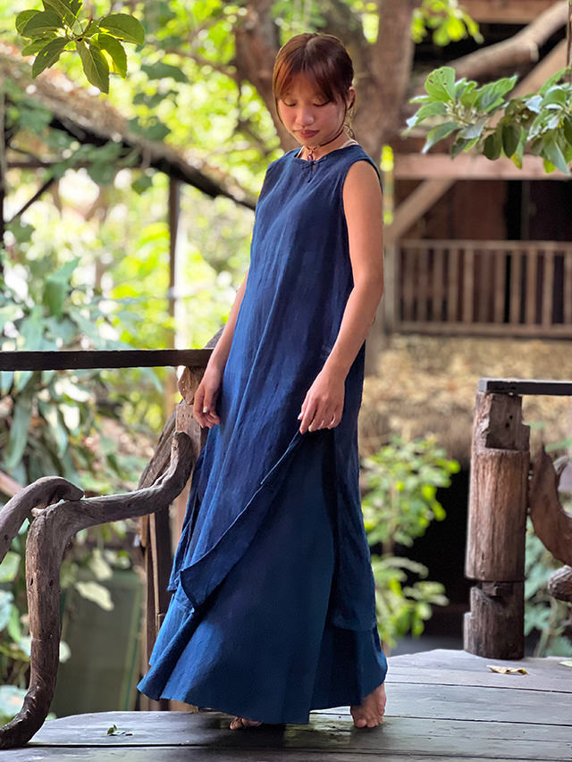 製品名: asana HEMP100% サイドスリット ワンピース・草木染め