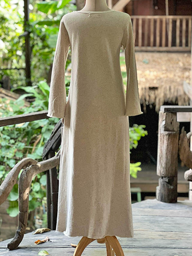 asana ヘンプコットン ふかふか カシュクール風 ロング ワンピース・草木染め