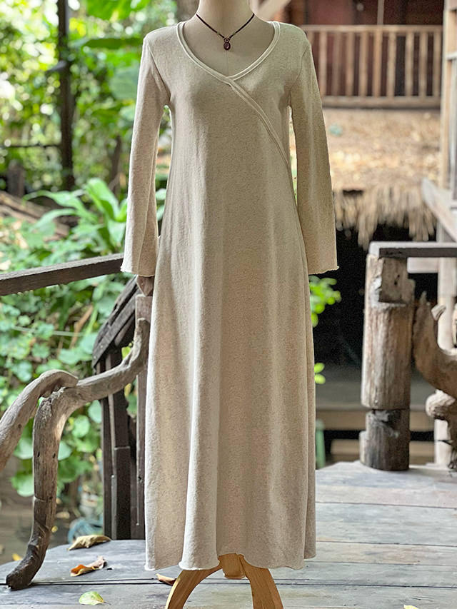 製品名: asana ヘンプコットン ふかふか カシュクール風 ロング ワンピース・きなり