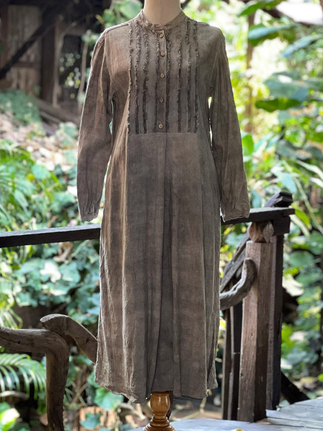 製品名: asana HEMP100% フリンジ ロング ワンピース・草木染め