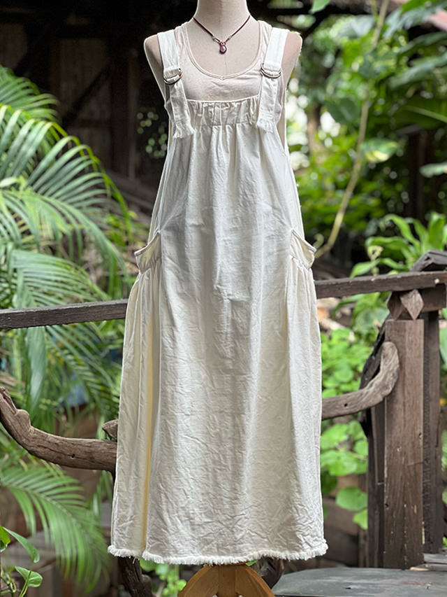 asana HEMP100% デニム風 サロペット ワンピース・きなり