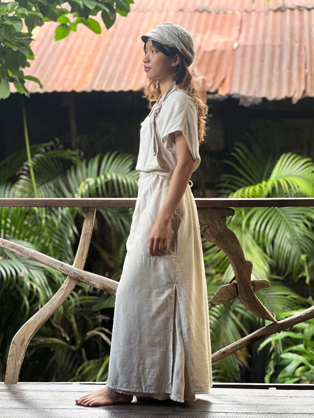 サラサラ、ヒラヒラ、ヘンプ100%のロング貫頭衣ワンピース