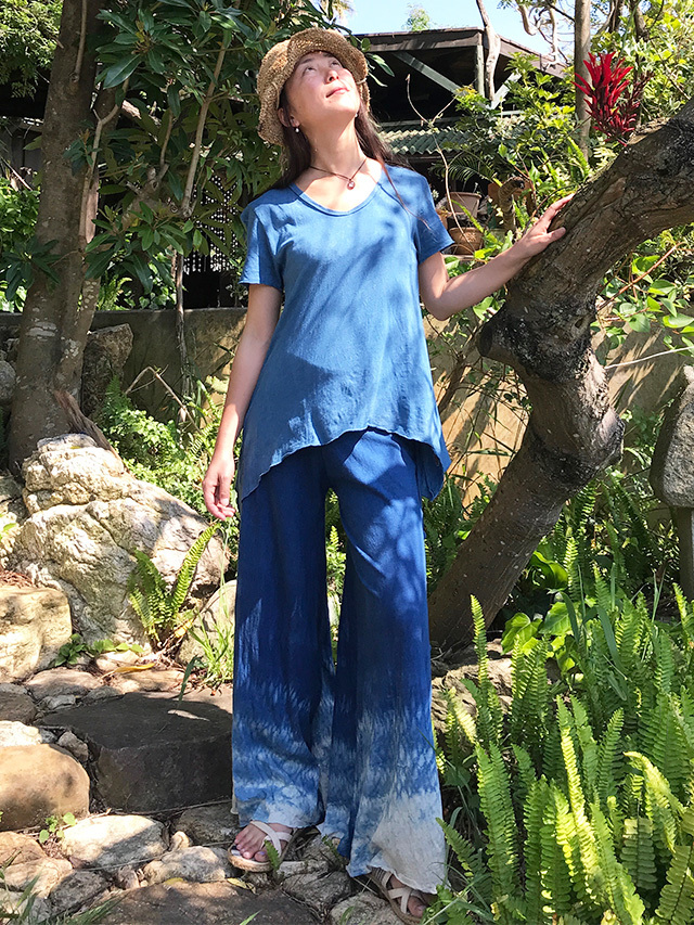 製品名: asana ヘンプコットン 薄手 ロングワイド パンツ・草木絞り染め