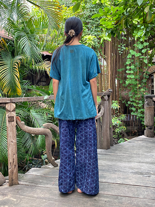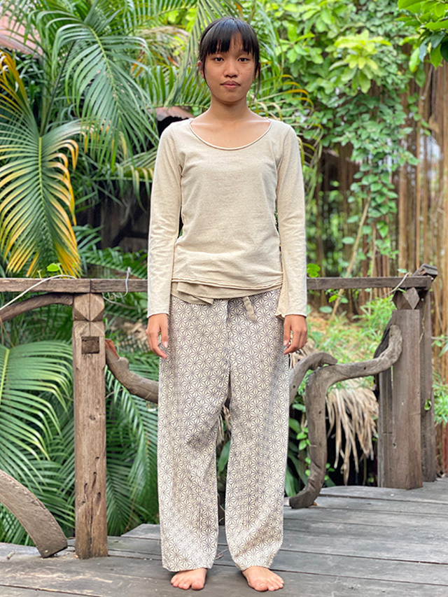 製品名: asana HEMP100% & コットン 麻柄プリント タイパンツ