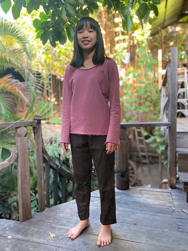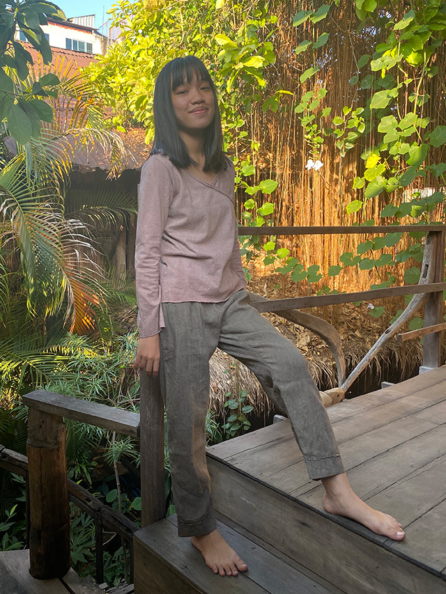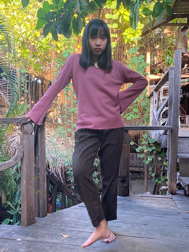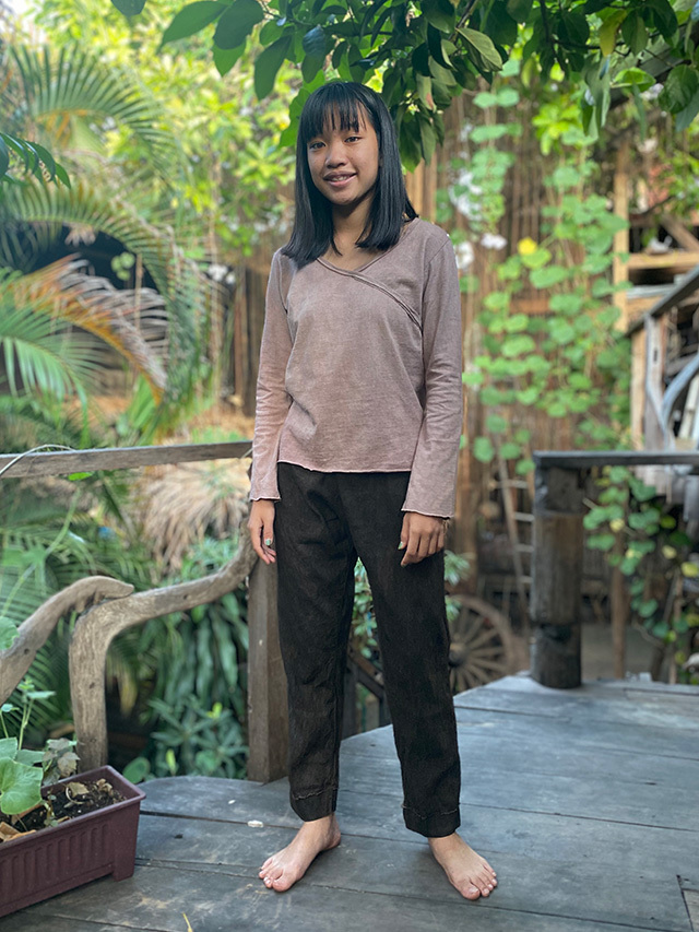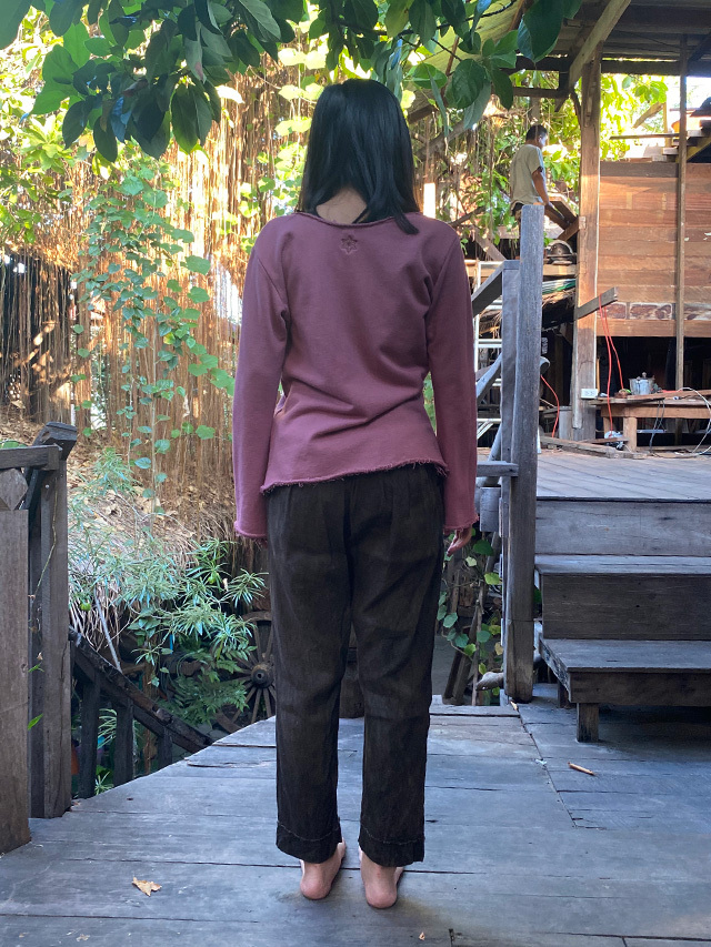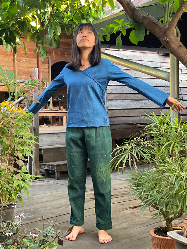 asana ヘンプコットン 厚手 Vネック フレアースリーブ・草木染め (17色)