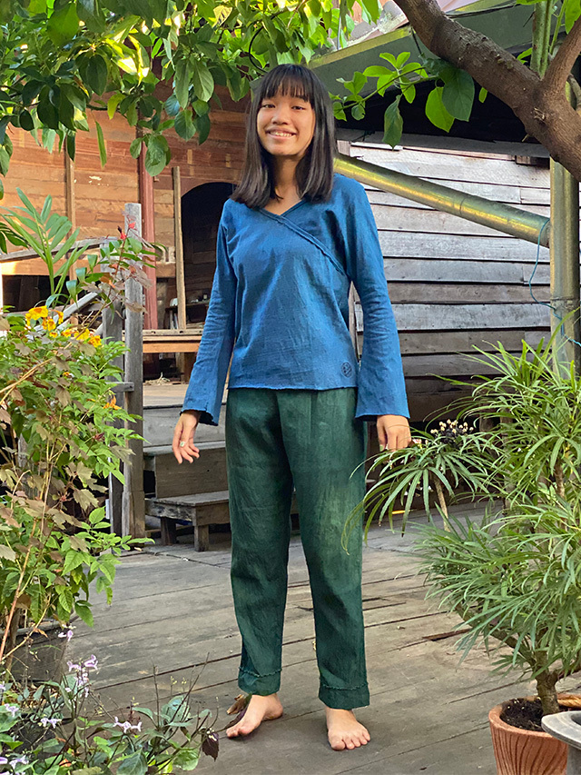 ※お品物は、染色し、乾かした状態で出荷していますので必ず着用前に一度洗濯してください。なお洗濯には自然に優しい洗剤をご利用いただき、特に蛍光剤などが入った「合成洗剤」のご利用は激しく色落ちしますのでお控えください。