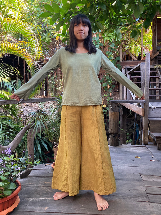 製品名: asana HEMP100% 厚手 フリンジ フレアーパンツ・草木染め