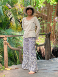asana HEMP100% 麻柄プリント フリンジ フレアーパンツ