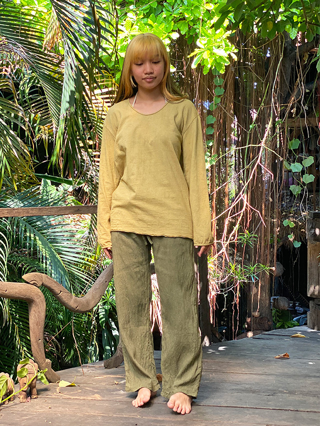 厚手生地のヘンプコットンロングスリーブの草木染め