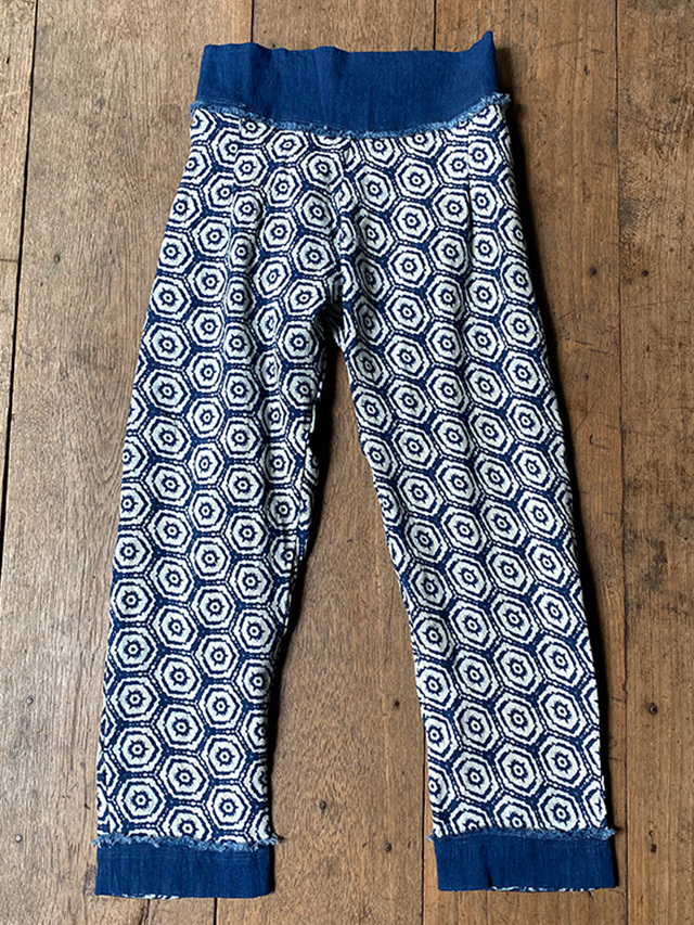 asana HEMP100% ガーゼ ハニカム柄インディゴ抜染 もんぺ パンツ