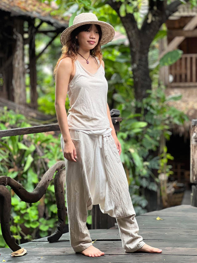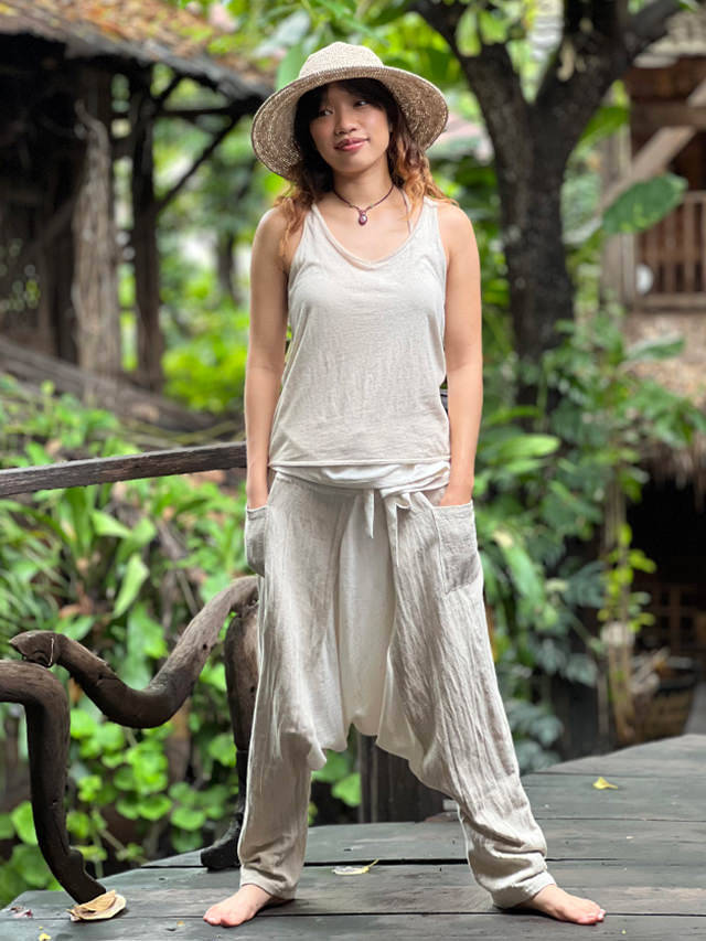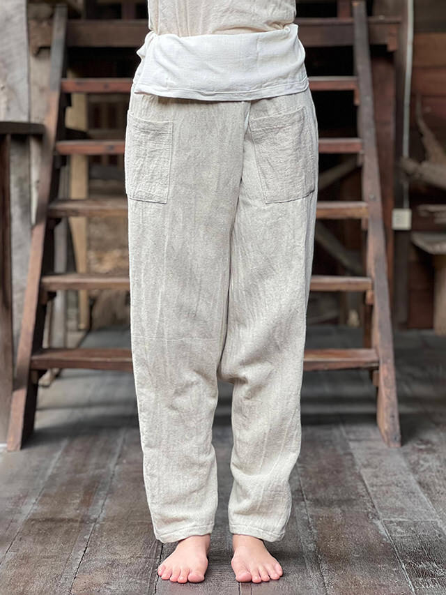 asana HEMP100% 厚手 サルエル タイパンツ・きなり