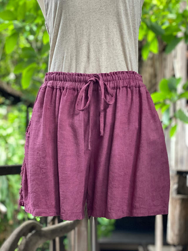 asana HEMP100% テロテロ ギャザー ショート パンツ・草木染め (11色)