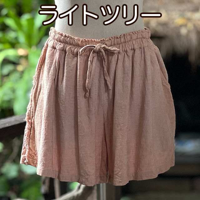 製品名: asana HEMP100% テロテロ ギャザー ショート パンツ・草木染め