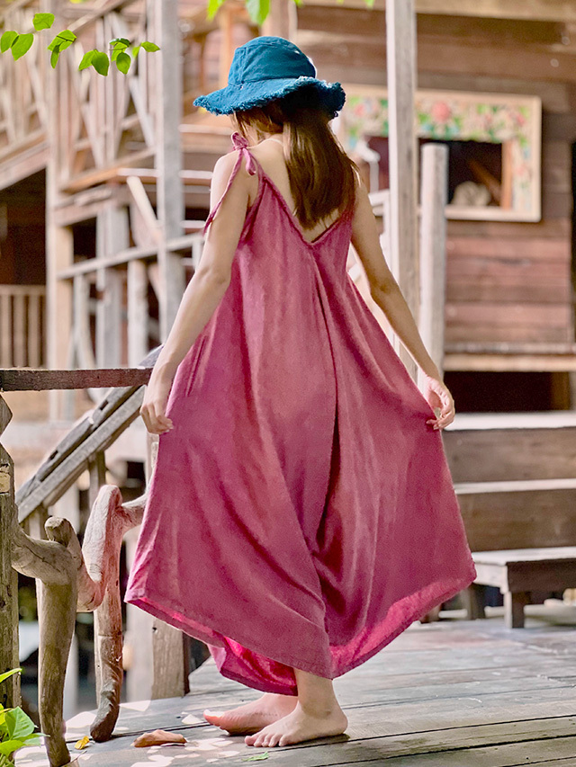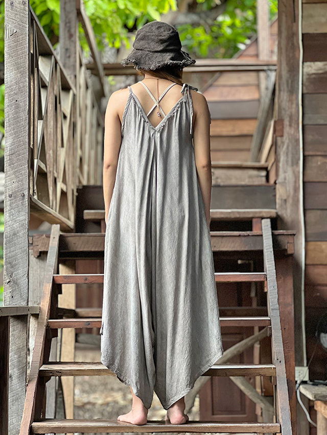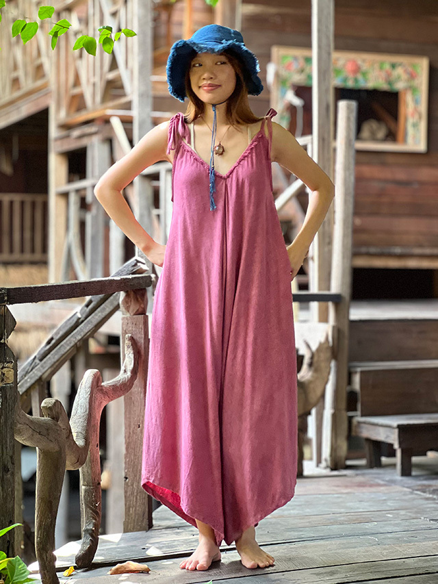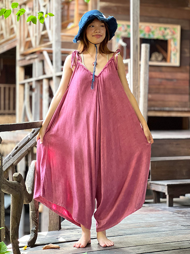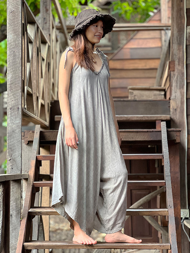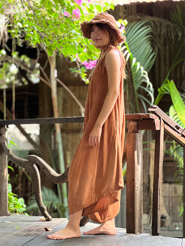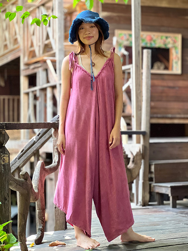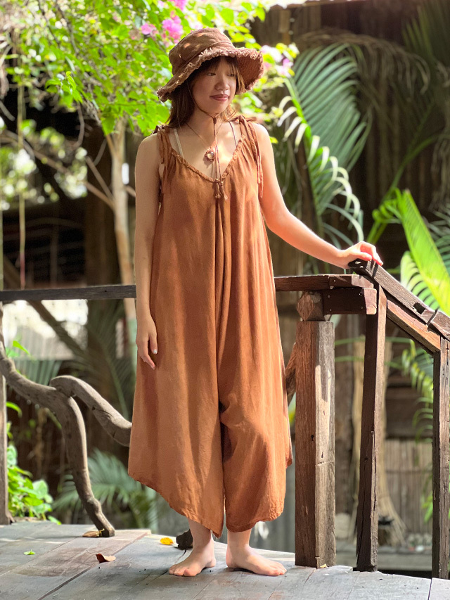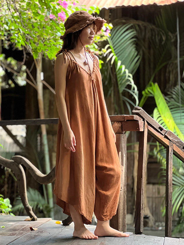 asana HEMP100% テロテロ Vネック オーバーオール・草木染め (9色)