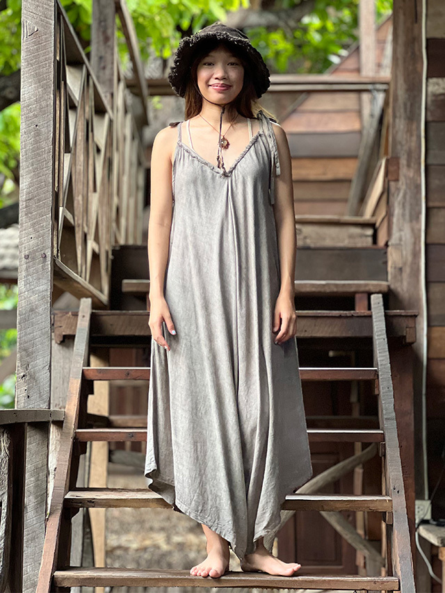 製品名: asana HEMP100% テロテロ Vネック オーバーオール・草木染め