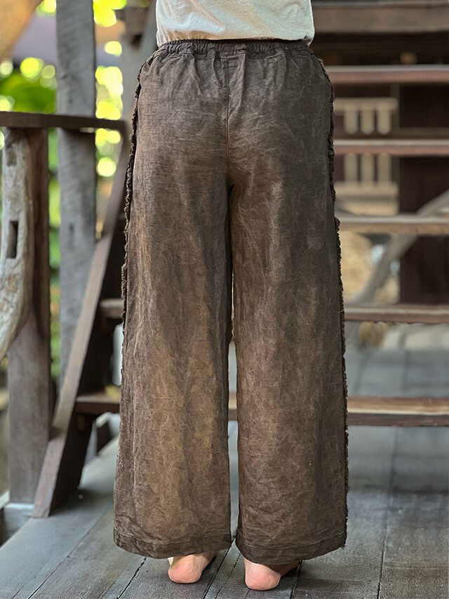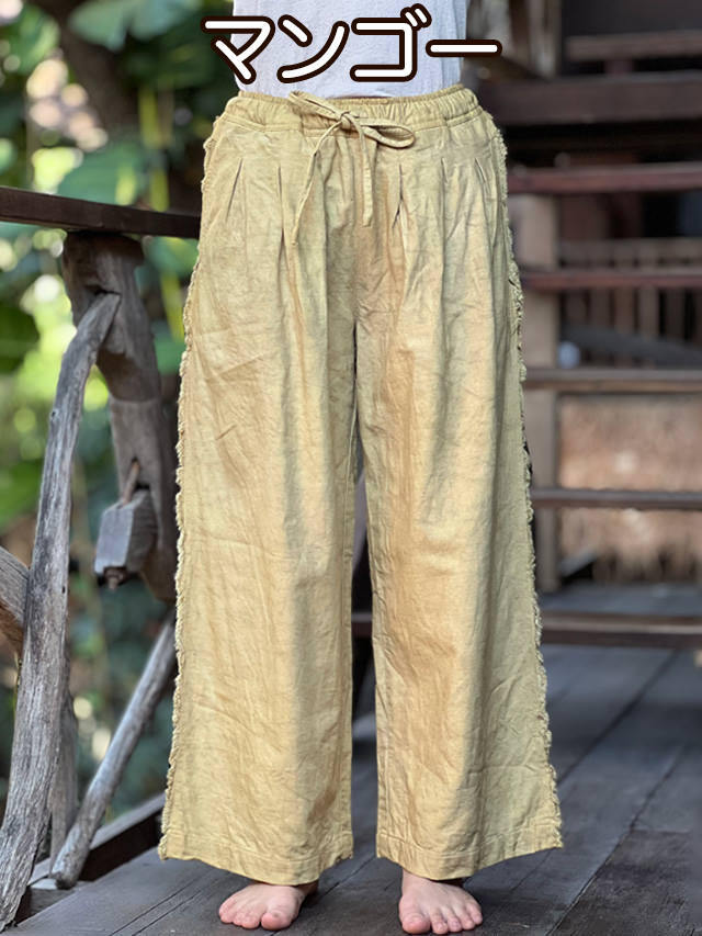 asana HEMP100% デニム風 フリンジ パンツ・草木染め (9色)