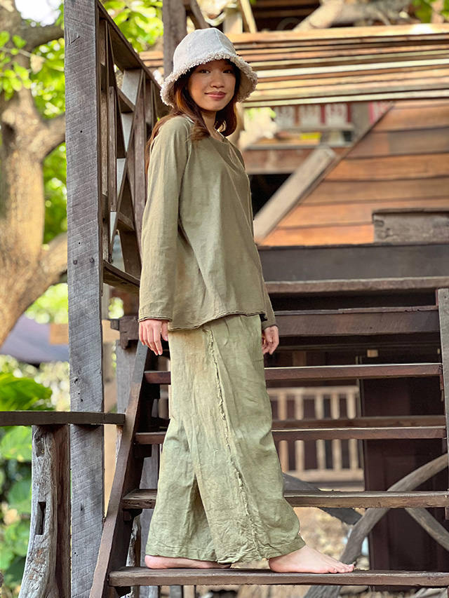 厚手生地のヘンプコットンロングスリーブの草木染め