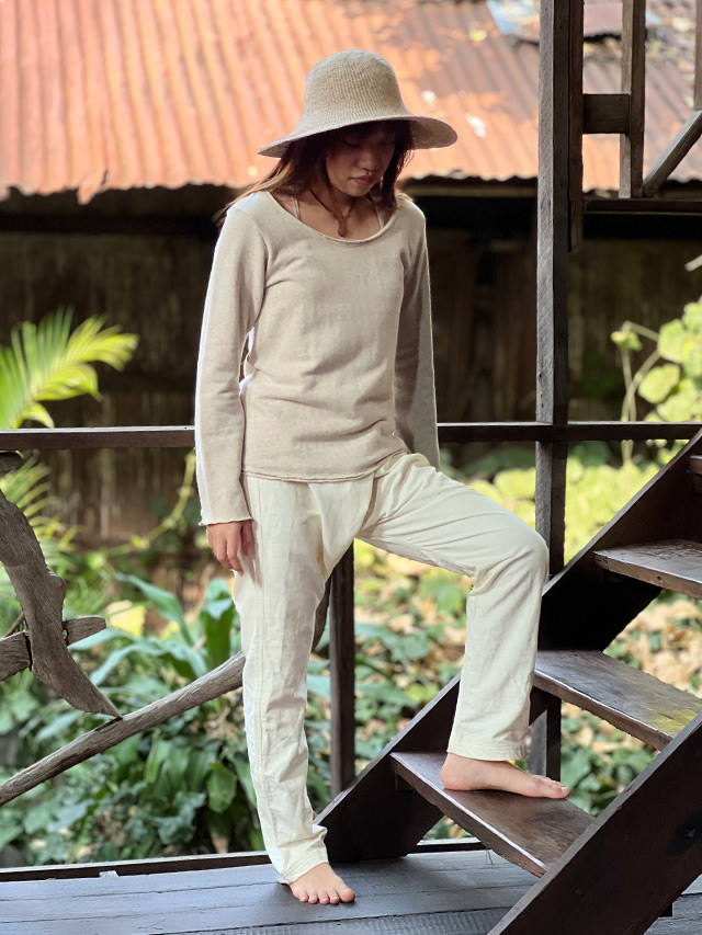 asana HEMP100% デニム風 まつり タイパンツ・きなり