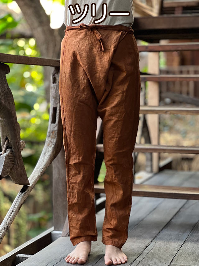 asana HEMP100% デニム風 まつり タイパンツ・草木染め (6色)