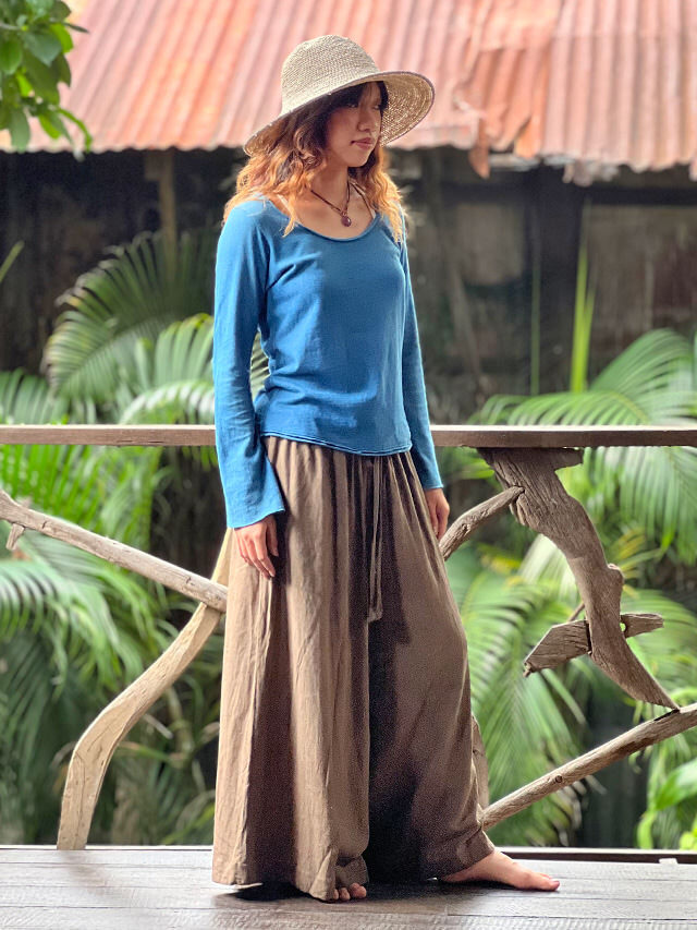製品名: asana HEMP100% テロテロ フレアー パンツ・草木染め
