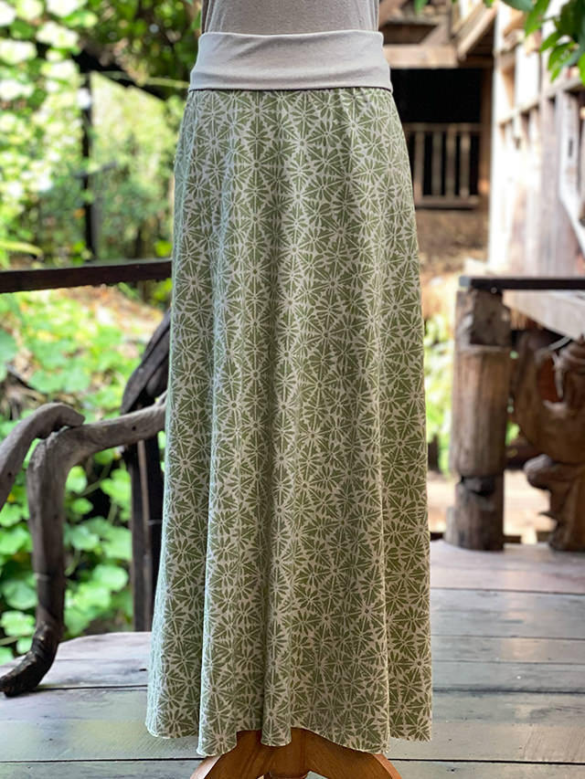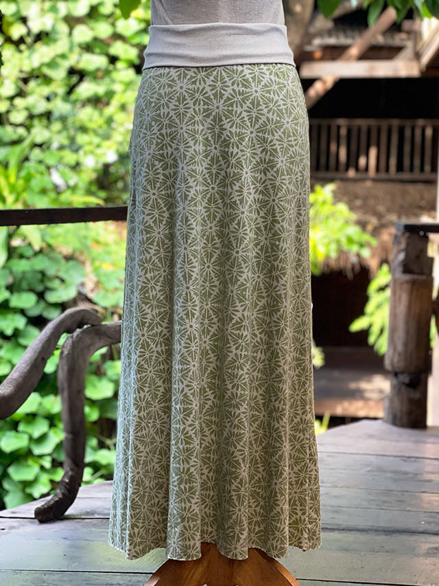 asana ヘンプコットン 薄手 麻柄プリント ロング スカート
