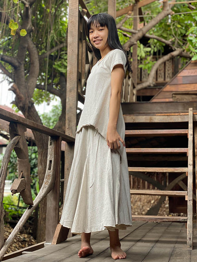 asana ヘンプコットン 厚手 ひらひら 切り替え スカート・きなり