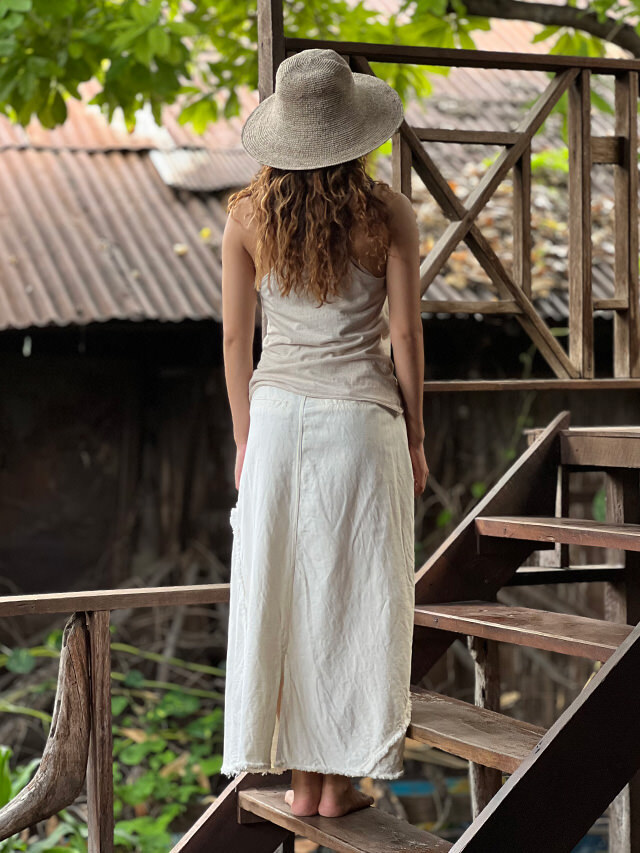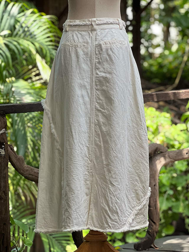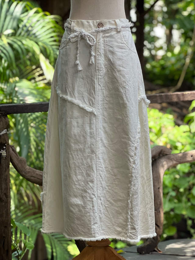 asana HEMP100% デニム風 切り替え ロング スカート・きなり