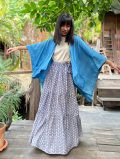 麻柄オリジナルプリントのヘンプ100%ティアードスカート