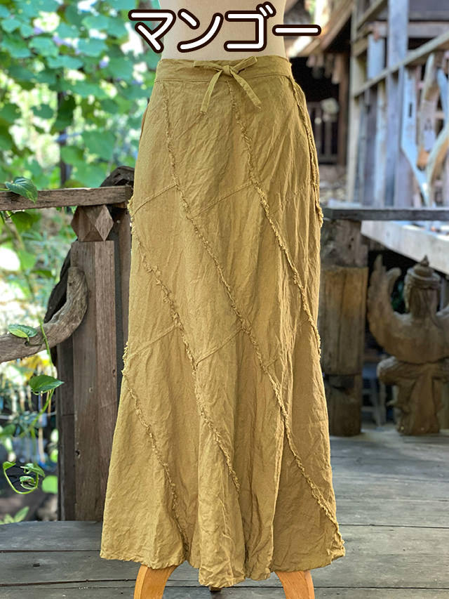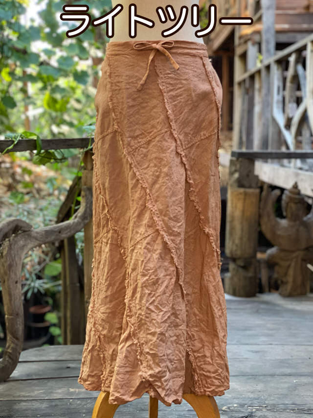 製品名: asana HEMP100% 厚手 NEW フリンジ トルネード ロングスカート・草木染め