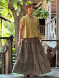 asana HEMP100% フリンジ ティアード スカート・草木染め