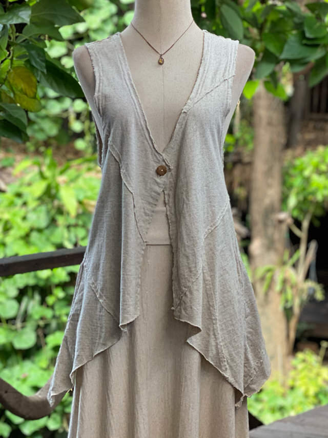 asana ヘンプコットン 厚手 森のパッチワーク ショート ベスト・草木染め