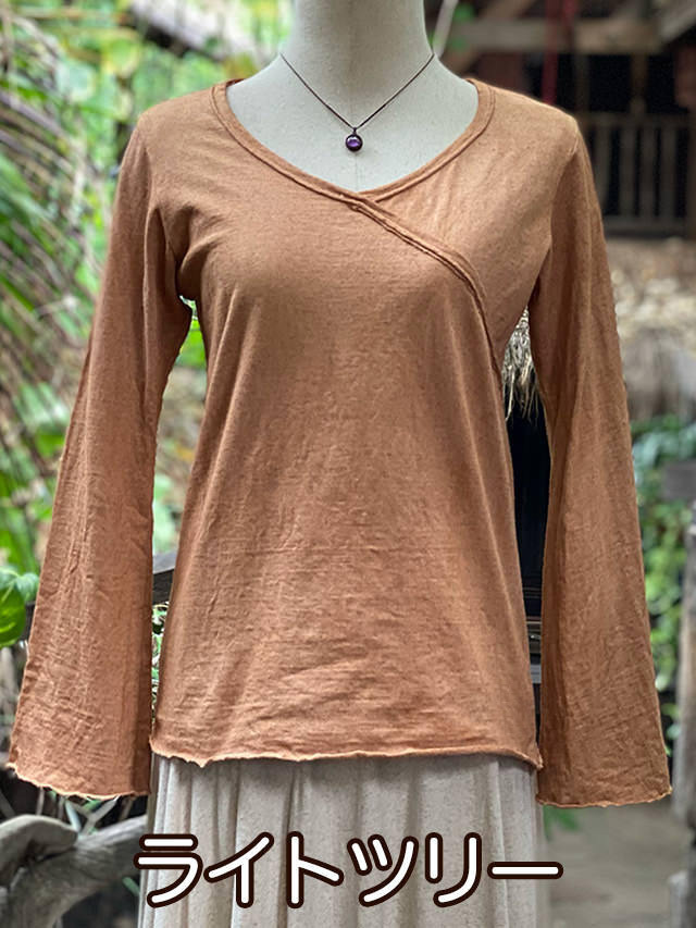 asana ヘンプコットン 厚手 Vネック フレアースリーブ・草木染め (17色)