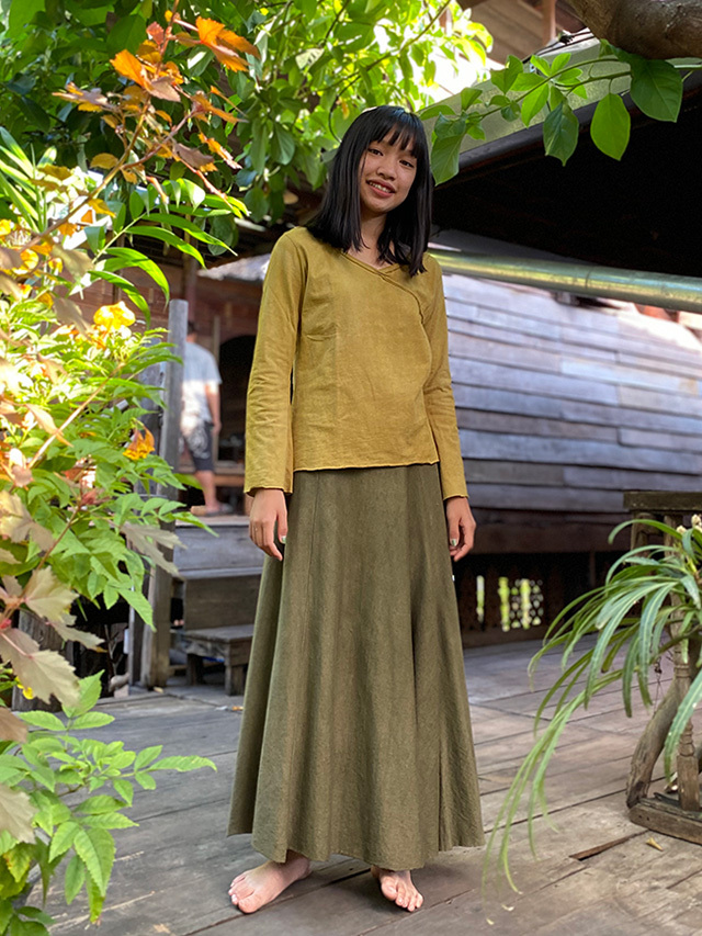 長年人気のヘンプコットン ロングフレアースカートの草木染め