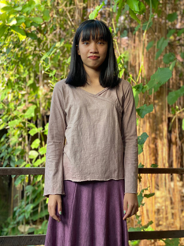 製品名: asana ヘンプコットン 厚手 Vネック フレアースリーブ・草木染め