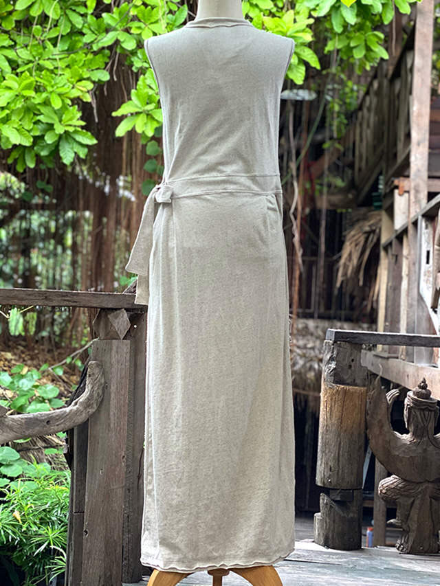 asana ヘンプコットン 厚手 カシュクール ノースリーブ ワンピース・草木染め