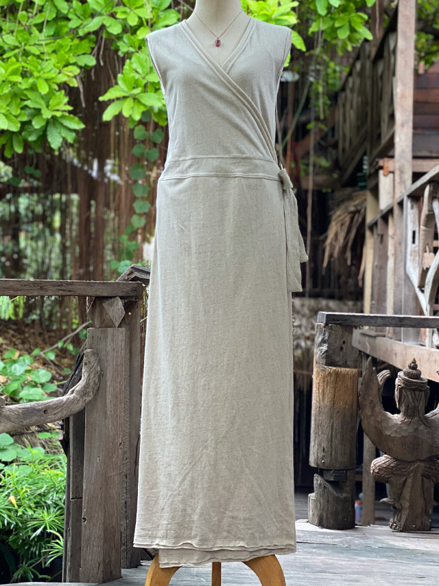 製品名: asana ヘンプコットン 厚手 カシュクール ノースリーブ ワンピース・きなり
