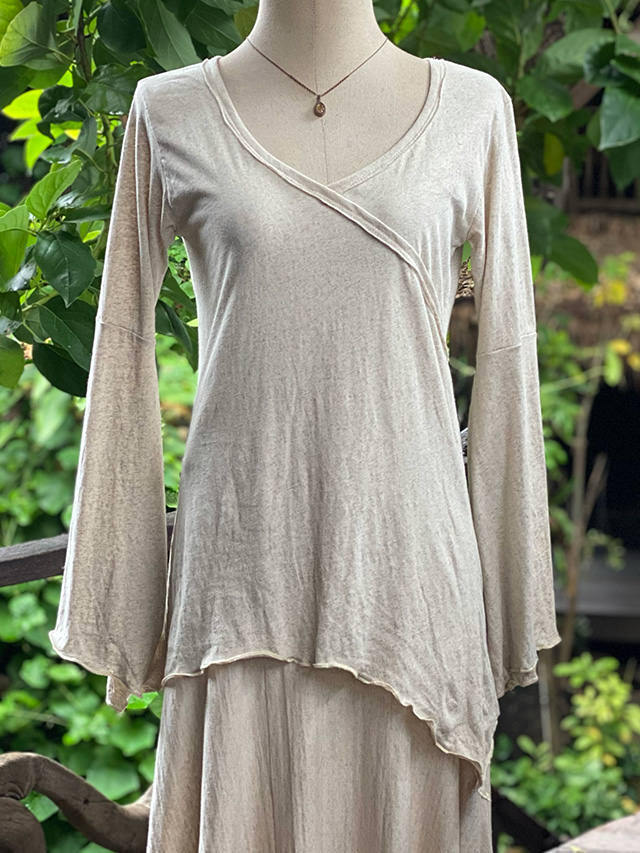 asana ヘンプコットン 薄手 カシュクール風 フレアースリーブ・草木染め