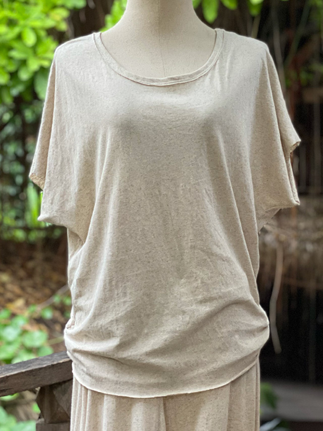 asana ヘンプコットン 薄手 ギャザー Tee・きなり