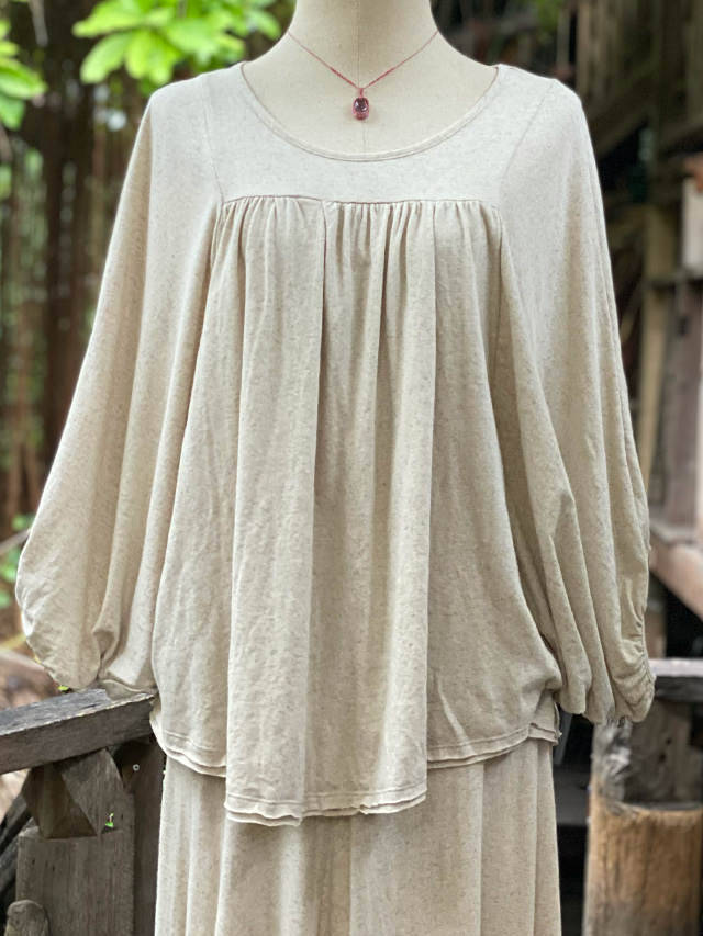 • asana ヘンプコットン 薄手 ギャザー ポンチョ・きなり